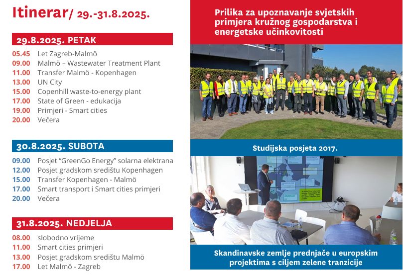 Nakon izuzetno pozitivnih reakcija prethodnih posjeta u skandinavske zemlje, s osobitim zadovoljstvom najavljujemo novi stručni studijski posjet Danskoj i Švedskoj, koji će se održati od 29. do 31. kolovoza 2025. godine.